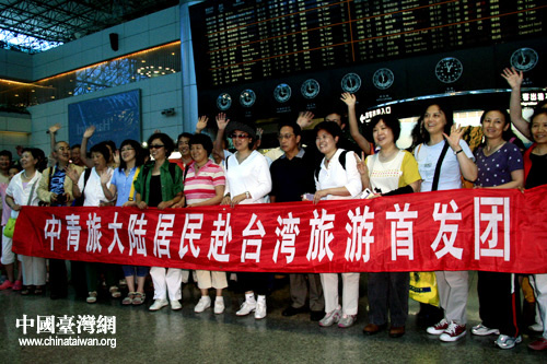 中國臺(tái)灣網(wǎng)7月11日臺(tái)北消息 來自北京的近百名游客11日結(jié)束為期8天的在臺(tái)旅程,于北京時(shí)間下午14點(diǎn)10分乘坐國航包機(jī)由臺(tái)北桃園機(jī)場離臺(tái)返京。這是大陸居民赴臺(tái)旅游首發(fā)團(tuán)中首批返回大陸的游客。 率團(tuán)來臺(tái)進(jìn)行交流考察的海旅會(huì)會(huì)長邵琪偉臨行前在機(jī)場發(fā)表簡短講話,他表示:臺(tái)灣擁有豐富的旅游資源,島內(nèi)各界為大陸居民赴臺(tái)旅游做了充分準(zhǔn)備,希望兩岸旅游界進(jìn)一步加強(qiáng)交流與合作,共創(chuàng)雙贏。