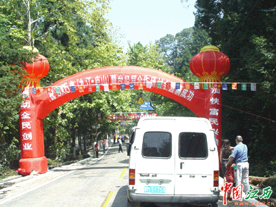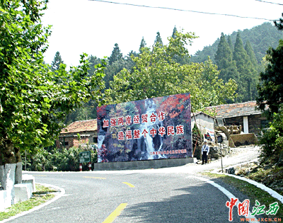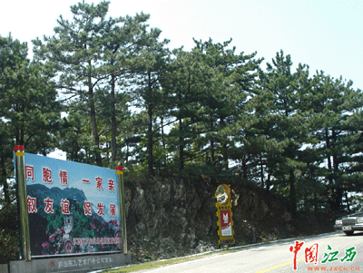 “同胞情,一家親;敘友誼,促發展。”9月11日,1176名臺灣客商紛紛來到廬山,參加2005年贛臺(九江 廬山)經貿合作研討會。這是在中部地區最大規模的一次臺商聚會活動。圖為上廬山時沿途可見研討會標識。(中國江西網記者 王光忠 攝)