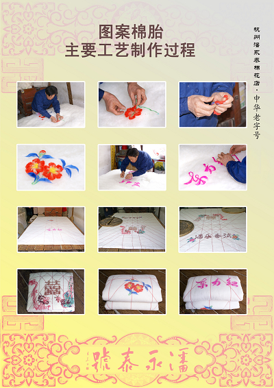 由于傳統的“潘永泰號”彈制的棉胎,采用獨特的傳統純手工工藝,是經過多年不斷改良的純手工制品,又用紅、綠等彩色棉花,采用“撕、扯、捻”等手法,結合傳統的吉祥圖案在棉胎上做字做花、畫龍畫鳳等,集多種工藝于一身,具有獨特的手工藝價值。“潘永泰號”手工彈制棉花有32道工序為純手工制作,是傳統棉胎手工制作工藝的典范,是極富有民族特色和地方特色的純手工業制品。