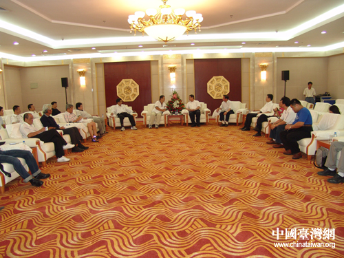 寧夏回族自治區(qū)政府新聞辦主任房全忠、臺辦主任蘇培學(xué)等領(lǐng)導(dǎo)會見時在座。(齊曉靖)