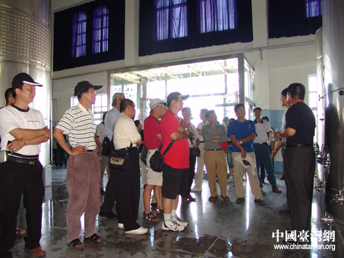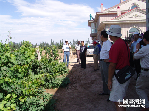 7月11日,兩岸記者在參觀采訪玉泉營葡萄基地參觀采訪。
