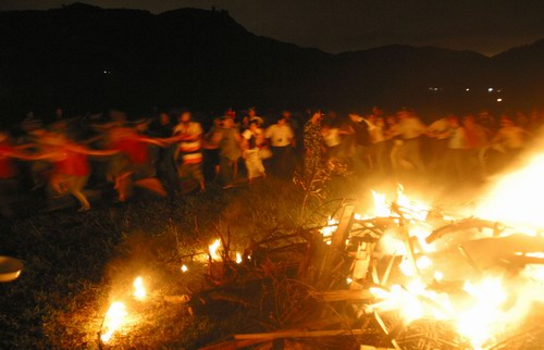 跟隨著高山族人的舞步,參與者們手牽著手來到篝火晚會現場,熊熊烈火,大家同歌共舞?熏在烈火與歌舞間體驗心手相牽的甜蜜!