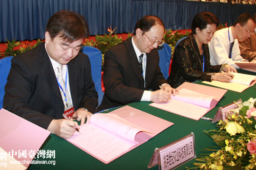 鄂臺兩地工商、企業等團體代表現場進行了合作新項目的簽約儀式。(中國臺灣網 高斯斯 攝)