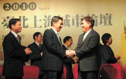 這次飛躍海峽兩岸近700公里的訪問,源于2年前的“上海之約”。2008年6月,臺北市市長郝龍斌率團(tuán)到上海,并積極邀請上海市市長韓正赴臺訪問。在2010年世博會開幕前夕,兩岸期盼已久的上海市政府訪問團(tuán)終于成行,抵臺訪問。