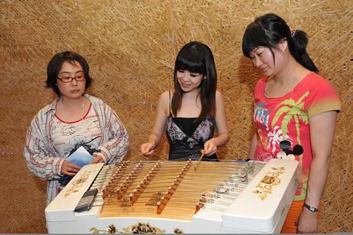 5月25日,來自臺(tái)灣的著名揚(yáng)琴演奏家盧念慈(中)在臺(tái)灣館內(nèi)為來賓介紹彈奏揚(yáng)琴的基本知識(shí)。當(dāng)日,位于世博園區(qū)A區(qū)的上海世博會(huì)臺(tái)灣館迎來第十萬名游客——來自湖南省委老干部局的劉云祥。他獲得了一臺(tái)價(jià)值1萬多元的52英寸液晶電視。新華社記者 何俊昌 攝