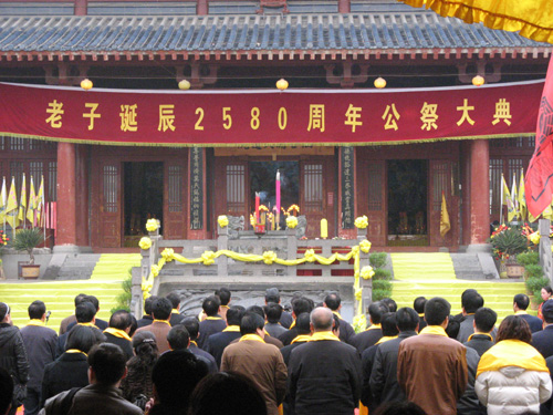 3月11日(農(nóng)歷二月十五),是我國文化先哲老子誕辰2580周年紀(jì)念日。來自海內(nèi)外的各界人士云集千古雄關(guān)——函谷關(guān)古文化旅游區(qū),隆重舉行老子誕辰2580周年公祭大典。臺灣朝圣團(tuán)代表、武當(dāng)山道教協(xié)會代表以及鄭州、洛陽、西安等地30多家旅行社負(fù)責(zé)人參加了公祭儀式。