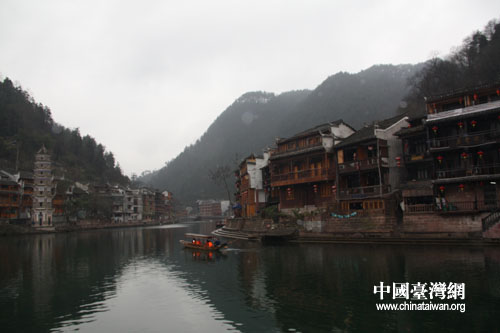 中國臺灣網2月27日湖南鳳凰消息 臺南市地方民意代表來湘參訪團今天游覽了風景優美的鳳凰古城,近40位來自臺南的民意代表、里長泛舟沱江,感受鳳凰古樸靈秀的自然風光,并訪問了城內沈從文故居、熊希齡故居及歷史博物館等人文景觀,體驗濃郁的湘西風情。