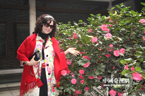 參訪團成員在院內盛開的花木前留影(李杰 攝)