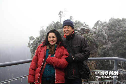 中國臺灣網2月28日消息 昨天,來湖南參訪的近40位臺南市地方民意代表、里長走進清溪潺潺、奇峰聳立的張家界旅游風景區,游覽黃龍洞和武陵源風景區,26日晚上,正值雨季的張家界適逢一場較大的雨雪,昨天武陵源內海拔稍高的地方出現了銀裝素裹的霧凇奇觀,引起來自寶島的客人驚嘆。