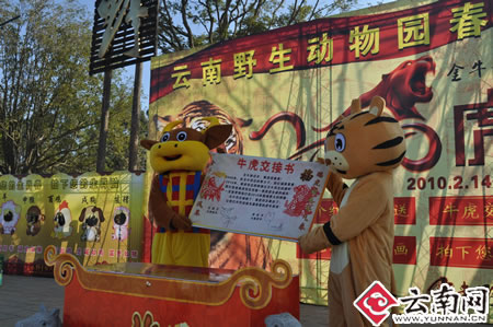 正值虎年,不少人選擇到野生動(dòng)物園看老虎,沾虎氣。云南野生動(dòng)物園虎年春節(jié)黃金周游客量超過(guò)9萬(wàn)人次,比2009年春節(jié)增長(zhǎng)了5%。公園春節(jié)期間推出的“百虎鬧春”、“牛虎交接儀式”、“財(cái)神爺送紅包”、“虎年說(shuō)虎文化展”、“自制年畫帶回家”等活動(dòng)吸引了游客的關(guān)注,新展出的3只小白虎、紅毛猩猩寶寶、斑馬寶寶等小動(dòng)物更是成為游客爭(zhēng)相追捧的對(duì)象。