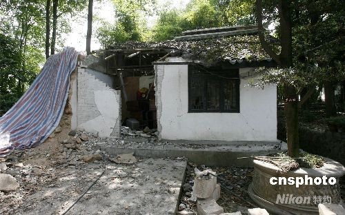六月五日,四川江油青蓮鎮李白故里的隴西院垮塌嚴重。隴西院是李白全家遷入蜀地后居住的地方,因李白祖籍隴西而得名,是四川省重點文物保護單位,現存的隴西院系為清乾隆五十三年在舊址上重建。 中新社發 慎重 攝