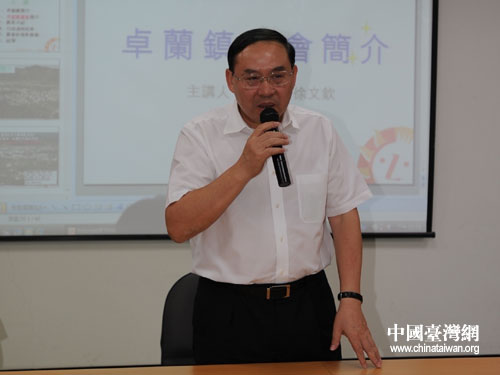 梅克保在聽取農(nóng)會組織負責人介紹卓蘭鎮(zhèn)水果生產(chǎn)銷售情況后講話。(湖南省臺辦 李蘭 攝)