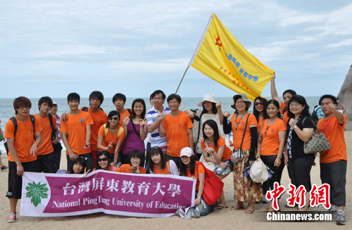 中新網三亞7月19日電 7月18日晚,全國臺聯2011年臺胞青年千人夏令營海南分營在濱海城市三亞閉營。14日至18日,30名來自臺灣屏東教育大學的師生和10名海南大學學生一起,開展素質拓展活動,參觀海南省博物館、東寨港紅樹林,到五指山體驗峽谷漂流,參觀三亞天涯海角等景區,結下深厚情誼。