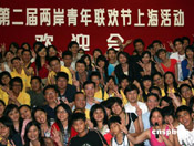 八月一日晚,第二屆“兩岸青年聯歡節”上海站活動在滬舉行盛大的歡迎會。在聆聽了上海世博局副局長周漢民有關《世博會與上海經濟社會發展》的演講后,現場的三百名臺灣青年反響熱烈,之后,他們與上海同齡人聯歡并合影留念。(中新社發 許曉青 攝)
