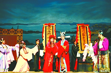 9月8日晚,臺灣豫劇團在平頂山市會議中心表演新編豫劇《秦少游與蘇小妹》。這場豫劇專場演出是河南和臺灣“兩岸戲曲展演周”活動的重要組成部分。 姜濤 賈志瓊 攝