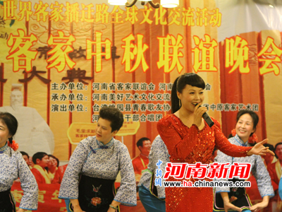 河南省中原客家藝術團歌唱家演唱的《客家山歌接親人》表達了中原人對寶島親人的好客和熱情。