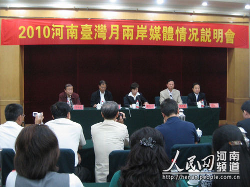 河南省臺辦副主任王慶春介紹了2010河南臺灣月有關情況!2010河南臺灣月”活動以“同根同祖同源,交流合作發展”為主題,由省臺辦和省直有關部門及相關地市共同承辦,全國臺商投資企業聯合會、臺北世貿中心、鄭州市臺商投資企業協會協辦。整個活動包括經貿洽談、文化展示、旅游推介、農業合作、教育交流、兩岸關系研討、媒體互動等7個部分的16項重要活動內容。將有來自臺灣政界、工商界、文化界、教育界、旅游界、新聞界等2000余人參加。