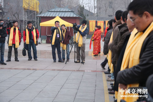 圖為臺灣媒體記者準備進行謁拜黃帝儀式(中國臺灣網 徐維彬 攝)