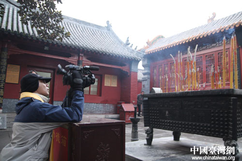 圖為臺灣媒體記者在黃帝故里取景拍攝(中國臺灣網 徐維彬 攝)