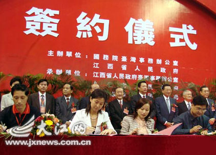 大會簽約項目92個,臺商投資金額10.1億美元,較上屆研討會增長30.2%,簽約臺資項目主要涉及電子及元器件、信息通訊、機械制造、汽車配件、紡織服裝及旅游等行業,較大項目有:臺灣詠昌企業集團增資南昌富昌科技有限公司2000萬美元生產電腦芯片項目,臺灣天元股份有限公司在九江開發區投資1500萬美元生產集裝箱護板及汽車配件項目,臺灣高效電子股份有限公司在南昌高新區投資1000萬美元生產傳感器、開關電源、變壓器項目,新加坡旺旺控股有限公司投資1000萬美元新建江西大旺食品有限公司等。