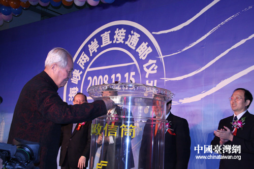 這不,在海峽兩岸直接通郵啟動儀式上,就有位81歲的老臺胞現場投交了一封家書,細一問才知道,他是寄給在臺北的二妹,來分享兩岸實現“三通”的喜悅。