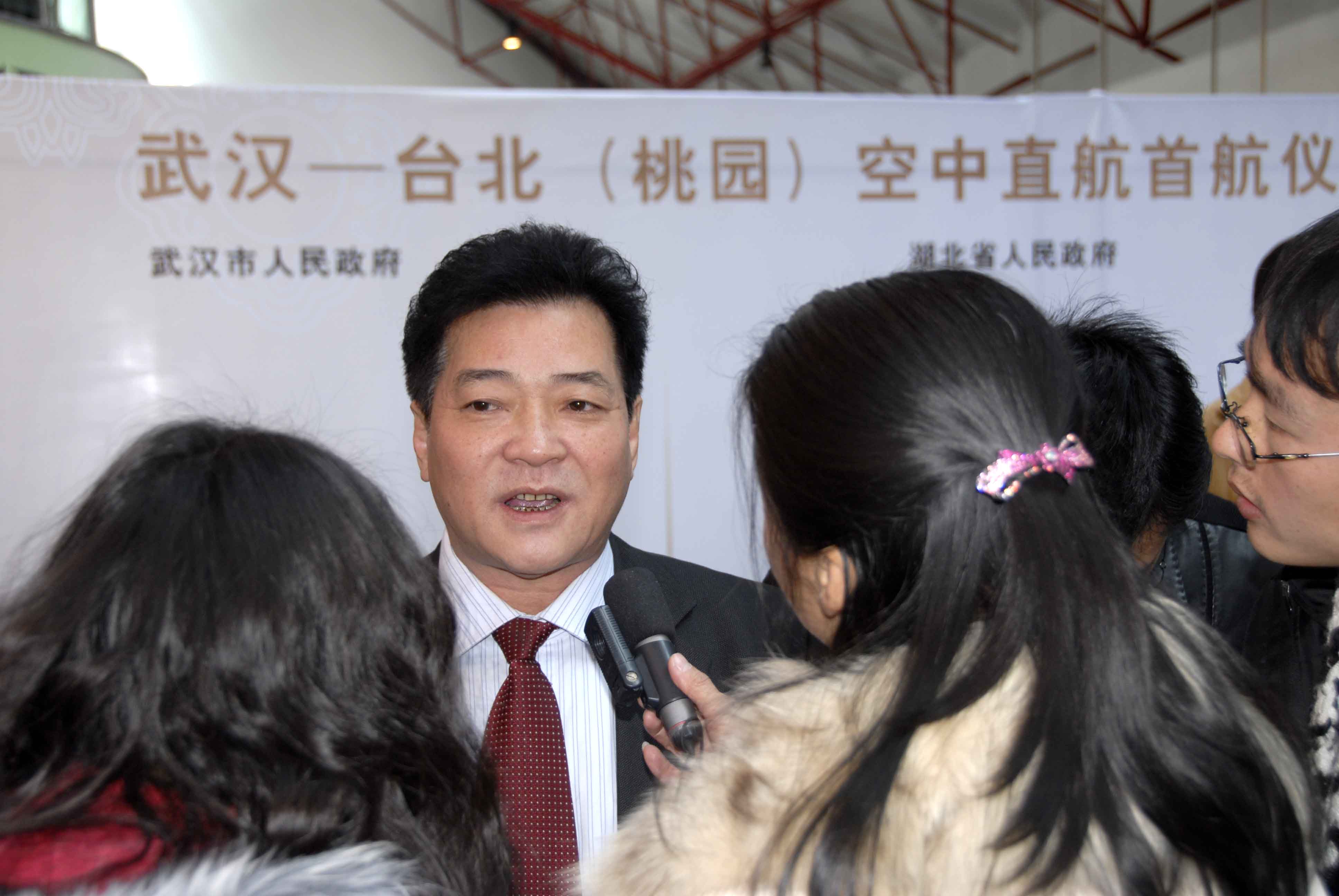 武漢市臺辦主任黃楚卿向媒體介紹漢臺首航相關情況  攝影:嚴越培