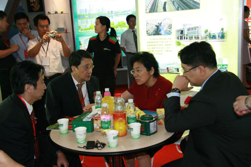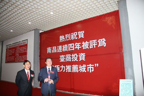 中國臺灣網8月30日江西消息 2007贛臺經貿研討會于8月28日-9月2日在江西南昌舉辦。有千余臺商及臺灣商界人士與會。29日上午舉行了“贛臺經貿合作成果展”啟動儀式。該圖為臺商與地方政府官員交流。(攝影:邵填)