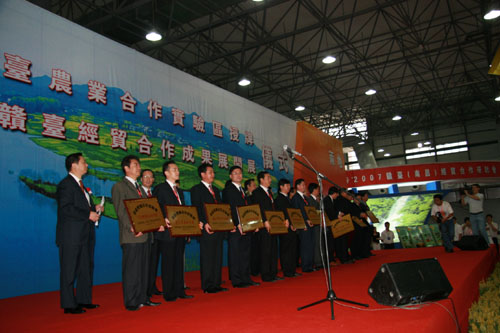 中國臺灣網(wǎng)8月30日江西消息 2007贛臺經(jīng)貿(mào)研討會于8月28日-9月2日在江西南昌舉辦。有千余臺商及臺灣商界人士與會。29日上午舉行了“贛臺農(nóng)業(yè)合作試驗(yàn)區(qū)”揭牌儀式。該圖為成果展現(xiàn)場。(攝影:邵填)