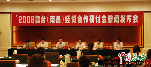 9月2日,由國務院臺灣事務辦公室和江西省人民政府共同主辦的“2008年贛臺經貿合作研討會”新聞發布會在昌召開。(江西網記者 何淳勇 攝)
