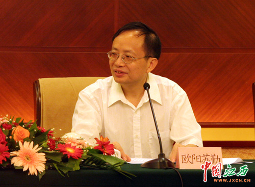 省委外宣辦、省政府新聞辦主任歐陽蘇勤主持新聞發布會。(江西網記者 何淳勇 攝)