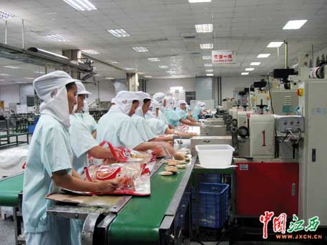 在上工前,工人們要經過三道清潔關的檢驗,方可入內操作。(江西網 王建亮 攝)