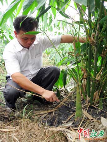 用附近電廠的廢料澆灌麻綠筍,循環利用資源。(江西網 王建亮 攝)