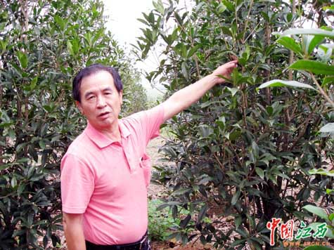 正是丹桂飄香時,江文龍幾乎每天都在山上,生活在丹桂園里。(江西網 王建亮 攝)