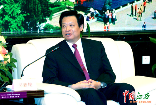 吳新雄在會見上介紹江西經濟發展和投資環境情況。(中國江西網記者 鄧小勇 攝)
