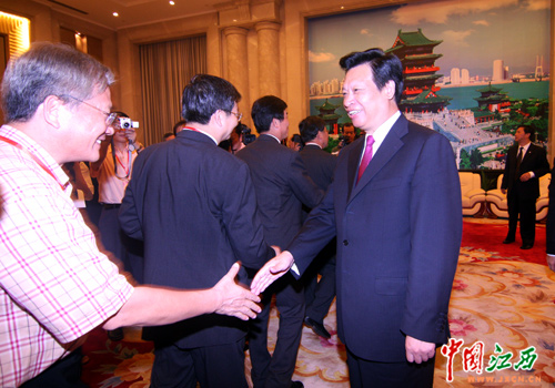 9月21日,吳新雄、孫亞夫等領導在南昌會見了前來參加'2008“贛臺會”臺灣客人。圖為會見現場。(中國江西網記者 鄧小勇 攝)
