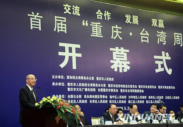 5月28日,中國國民黨主席吳伯雄在“重慶·臺灣周”開幕式上致辭。當日,首屆“重慶·臺灣周”在重慶開幕。首屆“重慶·臺灣周”由國務院臺灣事務辦公室、重慶市人民政府共同主辦。新華社記者 邢廣利 攝