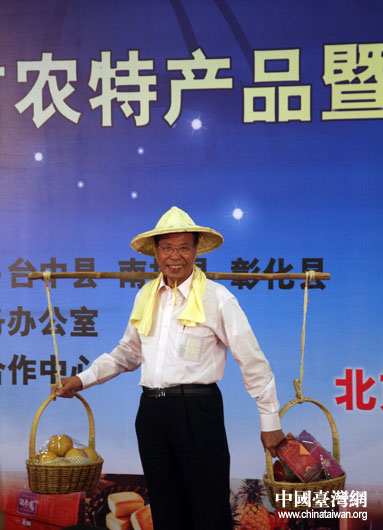 臺中縣縣長黃仲生變身“臺中老農”,為臺中農特產大力營銷。(中國臺灣網 鐘寶華 攝)