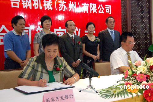 資料圖片:9月28日,國家開發銀行與臺鋼機械(蘇州)有限公司(前右)貸款合同正式簽署。臺鋼機械是獲得國家開發銀行首筆貸款的蘇州首家臺資中小企業。國家開發銀行還將在未來5年內向臺資企業提供300億元的貸款,積極解決臺資企業特別是中小臺商的融資難題,共同促進海峽兩岸經貿交流的發展,造福兩岸同胞,發展兩岸關系。 中新社 邱勇 攝