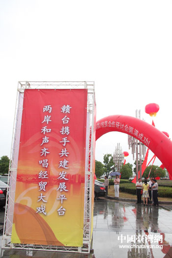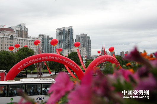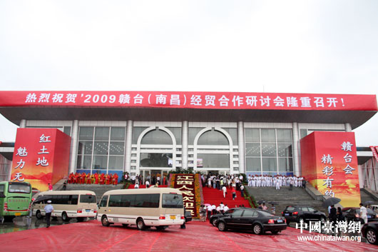 9月21上午,由國務(wù)院臺辦和江西省政府共同主辦的“2009贛臺經(jīng)貿(mào)合作研討會”在南昌開幕,千余臺商與會。在贛臺會主會場紅谷灘會展中心周邊,布景隆重而熱烈。(中國臺灣網(wǎng) 鐘寶華 攝)