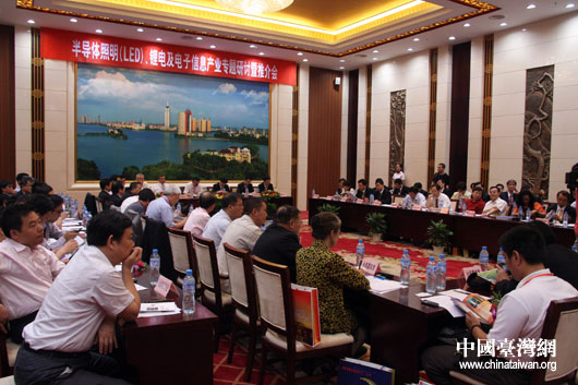9月21日上午,由國務(wù)院臺辦和江西省政府共同主辦的“2009贛臺經(jīng)貿(mào)合作研討會(huì)”在南昌開幕。開幕后,兩岸工商企業(yè)代表就有關(guān)投資合作項(xiàng)目及協(xié)議現(xiàn)場簽約,隨后,江西省七個(gè)專題的研討暨項(xiàng)目推介會(huì)同時(shí)展開。圖為半導(dǎo)體照明(LED)鋰電池及電子信息產(chǎn)業(yè)專題研討會(huì)暨推薦會(huì)現(xiàn)場。(中國臺灣網(wǎng) 鐘寶華 攝)