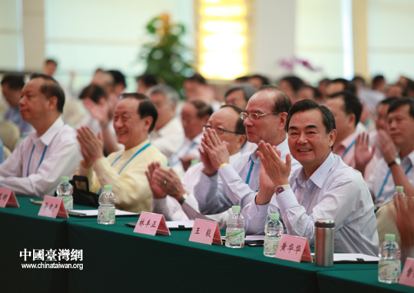 中國臺灣網7月10日廣州消息 第六屆兩岸經貿文化論壇在開幕式后進行主題演講。中共中央臺辦主任王毅,中國國民黨副主席林豐正、蔣孝嚴,新黨主席郁慕明等到場聽取演講,為專家們精彩的演講鼓掌。(中國臺灣網 鐘寶華 攝)