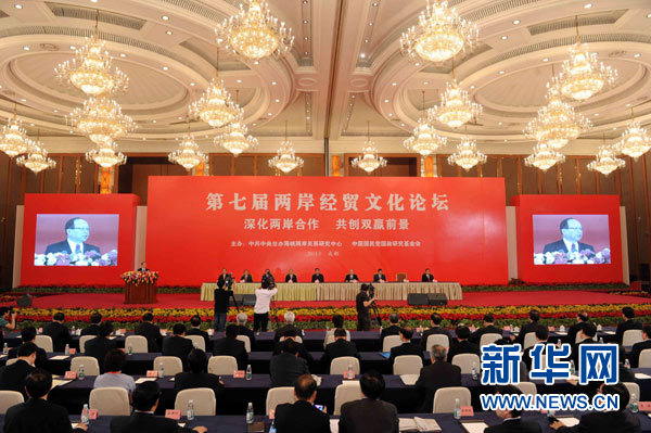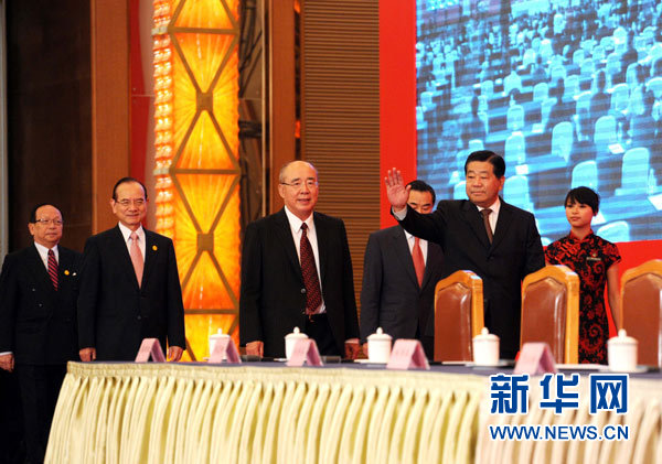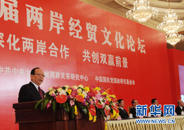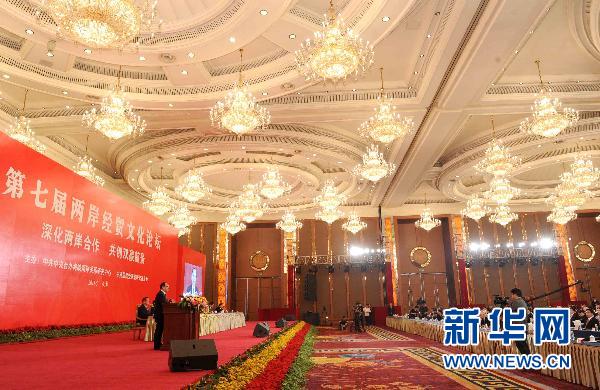 5月8日,第七屆兩岸經(jīng)貿(mào)文化論壇在四川成都閉幕。中共中央政治局常委、全國政協(xié)主席賈慶林和中國國民黨榮譽(yù)主席吳伯雄出席閉幕會。新華社記者 饒愛民 攝