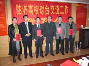 駐濟南、青島、煙臺的28所高校主管對臺交流工作負責同志分別參加了上述會議。會上,山東省臺辦向獲得2005年度山東省最佳和優秀對臺交流項目的山東大學、山東科技大學、中國海洋大學、濟南大學、山東經濟學院、山東藝術學院頒發了榮譽證書。中國海洋大學副校長王琳,魯東大學黨委副書記劉鳳鳴、副校長楊廣學,山東省教育學院黨委書記周桂珍、院長李清民、副院長徐以銘等學校負責同志分別參加了會議,并介紹了學校發展及與臺灣高校交流情況。