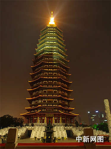 常州天寧寶塔通過燈光的變化,化身一支巨大的蠟燭,點(diǎn)亮星空。圖片來源:中國新聞網(wǎng)