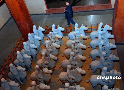 以宣傳2009中國第七屆花卉博覽會為主題的“盛世花開絲綢路全國行”車隊,3月下旬在徐州漢文化展示基地周圍作主題宣傳,春季來這里參觀游覽的游客絡繹不絕。徐州漢兵馬俑是徐州市東區部獅子山的楚王陵的組成部分,兵陣分布于6條俑坑,4000多件陶俑集群反映了西漢初年分封在徐州的楚王國軍隊整體建制和當時工匠的杰出制作工藝。中新社發 宋吉河 攝