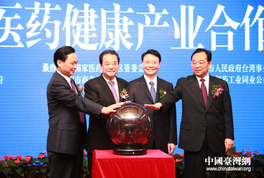 9月19日,“蘇臺(tái)生物醫(yī)藥健康產(chǎn)業(yè)合作高峰會(huì)”在江蘇泰州“中國醫(yī)藥城”舉行。在高峰會(huì)上,江蘇省副省長何權(quán)(右二)、臺(tái)灣工業(yè)總會(huì)理事長陳武雄(左二)中共泰州市委書記張雷(右一)和泰州市代市長徐郭平(左一)共同啟動(dòng)海峽兩岸(泰州)生技產(chǎn)業(yè)園開園儀式。(中國臺(tái)灣網(wǎng) 鐘寶華 攝)