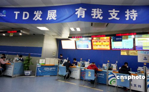 備受關注的3G(第三代移動通信)牌照將在1月7日發放,全球最大的移動電訊商——中移動將獲自主知識產權的TD-SCDMA(時分同步碼分多址)牌照,下午將給中國電信和新聯通分別發放CDMA2000和WCDMA(寬頻碼多分址)牌照。 中新社發 吳芒子 攝