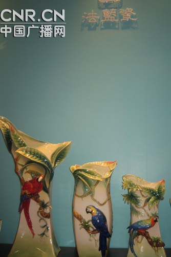 “你看,它大量運用花草鳥獸的一個方式在產品里面,你買這組產品回去,等于把大自然帶回去。還能喚起大家重視環(huán)保。尤其很多人會送這個竹子花瓶給朋友,希望他節(jié)節(jié)高升!……” 外觀精美,氣質優(yōu)雅,又被賦予這么多內涵,深受海內外政商名流青睞的臺灣法藍瓷果然名不虛傳。公司品牌公關經(jīng)理李建鎰說,在全球53個國家成功開拓6000多個營銷點后,公司已經(jīng)在廈門設立大中華區(qū)營銷中心,發(fā)力大陸市場:“隨著經(jīng)濟的起飛,人民越來越富裕的情況下,對于這種產品的需求我相信會越來越高!