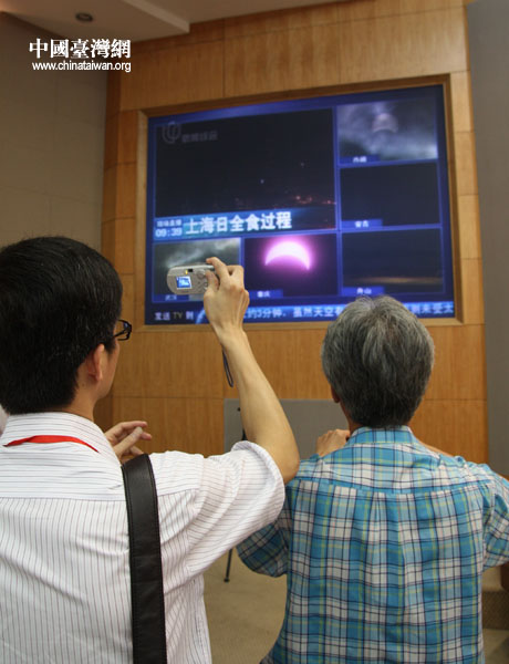 兩岸鄉村代表在上海青浦會議中心觀看500年一遇的日全食景觀。(中國臺灣網 邵磌 攝)