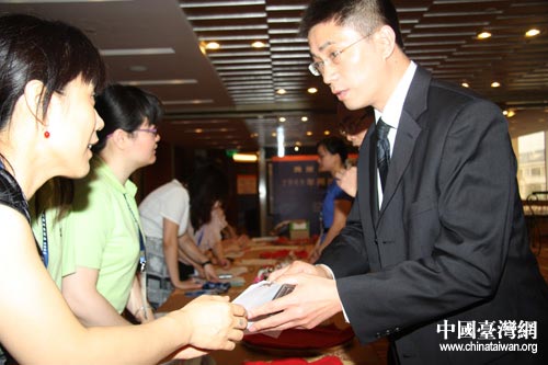 2009年兩岸互聯網發展論壇今天在北京開幕,圖為參加論壇的嘉賓簽到。(中國臺灣網 邵磌 攝)